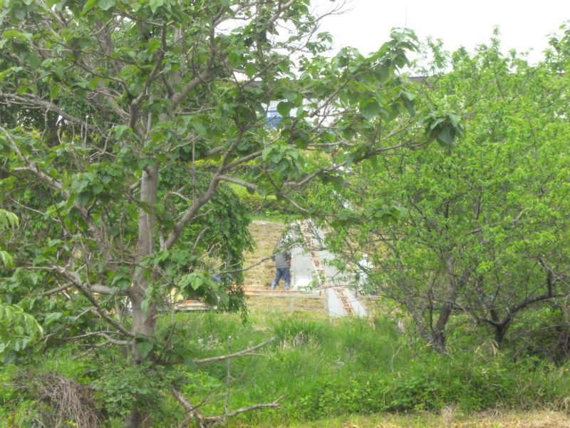 中学校は崖の所に、新しい排水路を作っているようでした。