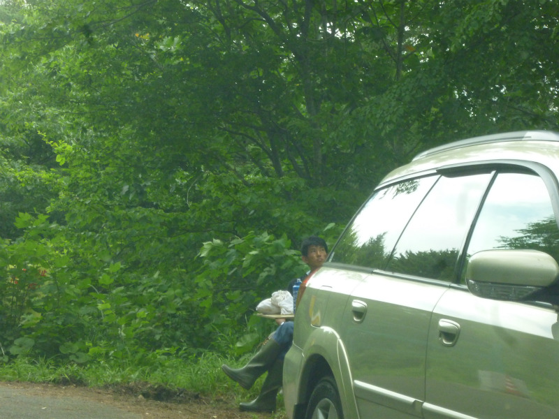 バリケード前には人が一人いて、脇に停めてあった車には環境省のような表示のある旗のようなものがありました。