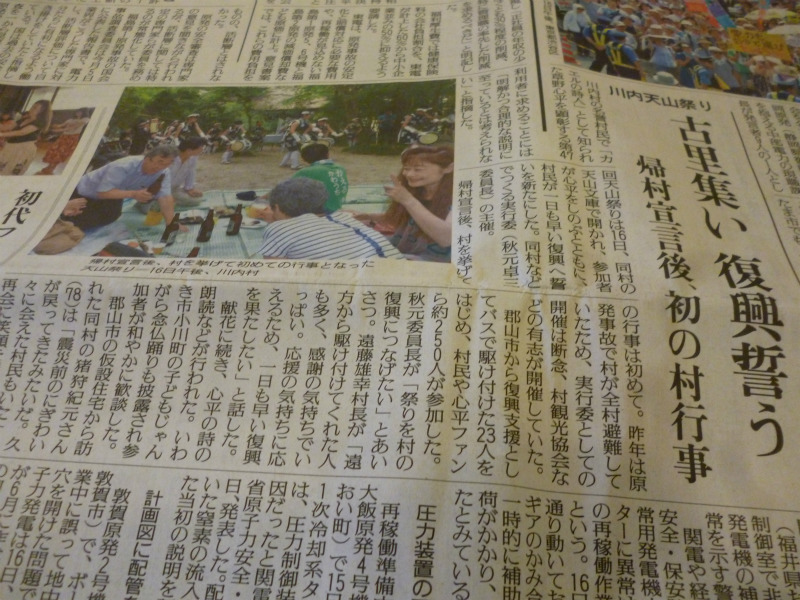 新聞で16日に川内村で祭りがあったとの記事を見て、無理してでも行けばよかったかと、少し後悔しました。