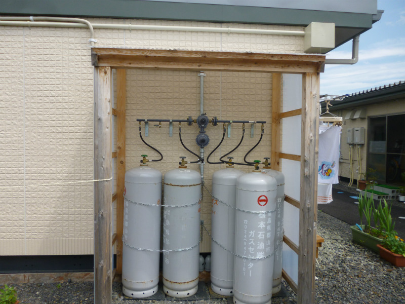 ガスボンベの上にも、雨避けの屋根が設置されていました。